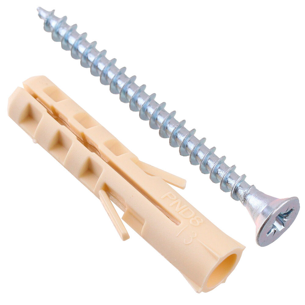 Саморез универсальный 4,5х50 – 8 шт; Дюбель нейлоновый распорный 8х40 – 8 шт.