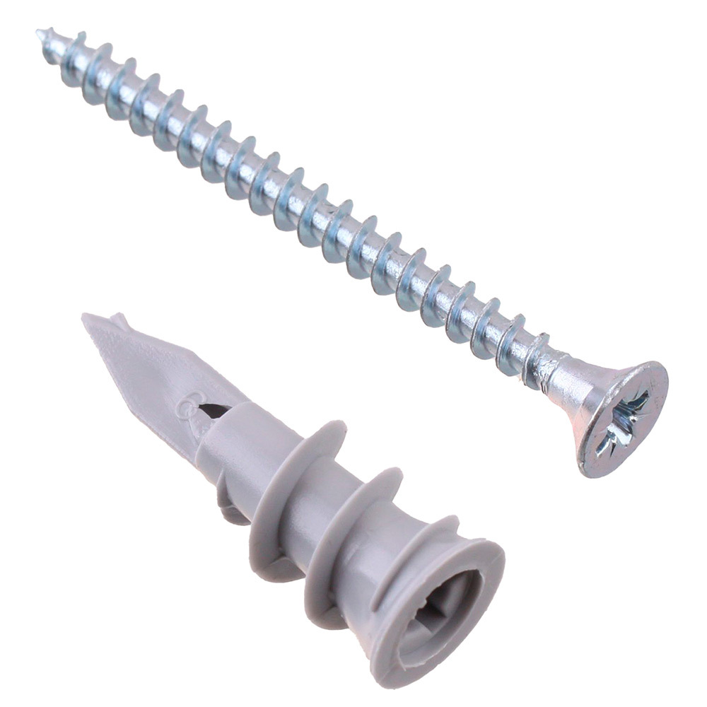 Состав: Дюбель для гипсокартона driva нейлон — 8 шт; Саморезы универсальные оц. 4,5х50 — 8 шт.