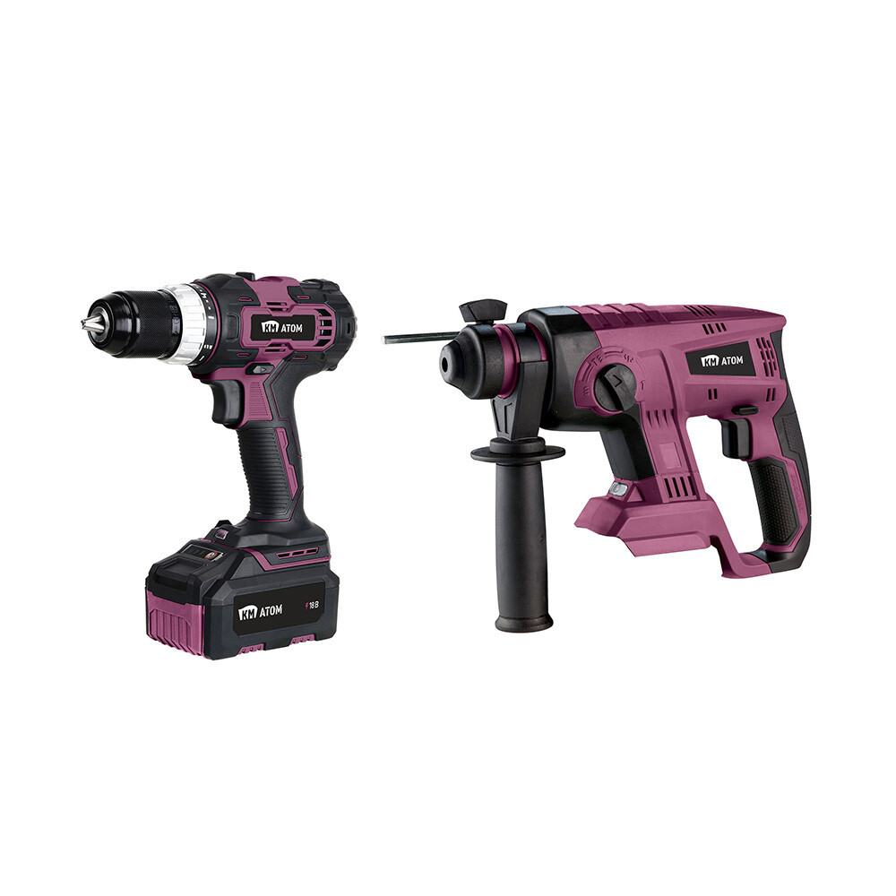 Набор аккумуляторного инструмента КМ АТОМ — дрель-шуруповерт (CD-181) и перфоратор (CRH-181BL).