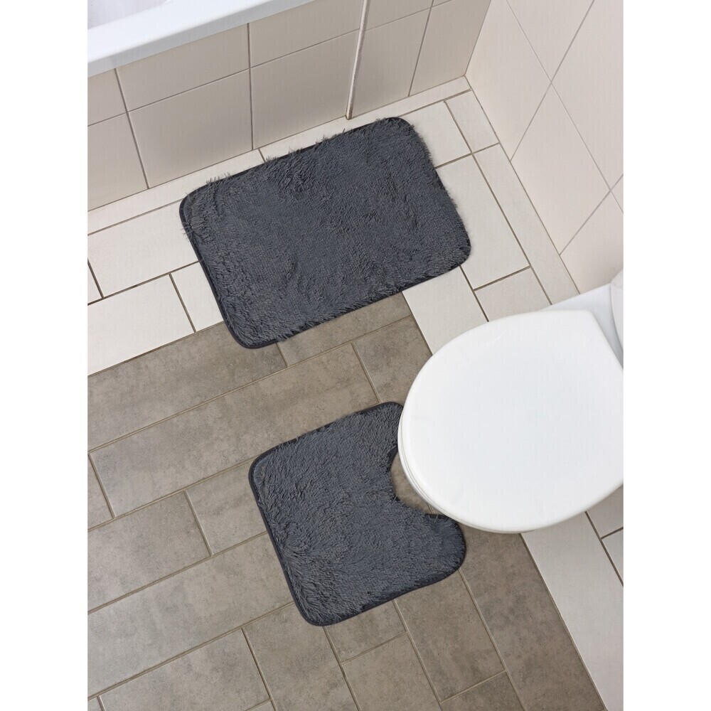 Набор ковриков для ванной и туалета серый 40х38/60х40 см Доляна Пушистик (3924908)