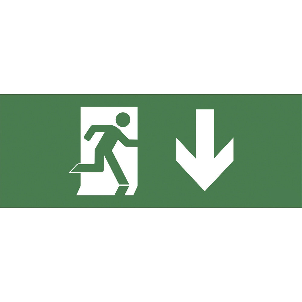 Самоклеящаяся этикетка для аварийного светильника «Фигура/стрелка вниз» к светильникам SSA-101, DPA-301. Выполнена на самоклеящейся ПВХ пленке высокого качества.
