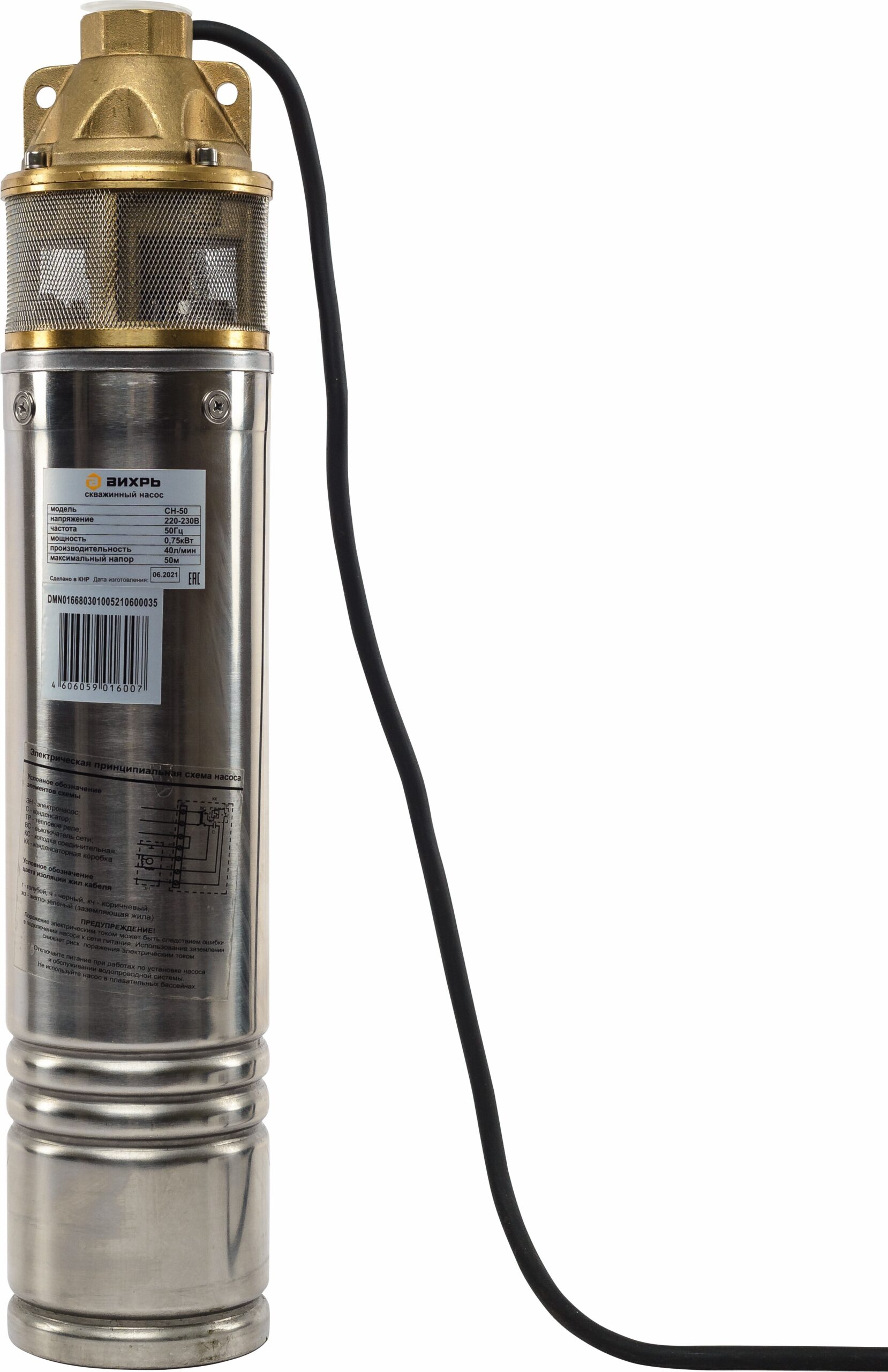 Насос скважинный Вихрь СН-50 для чистой воды 40 л/мин верхний забор (68/3/1)