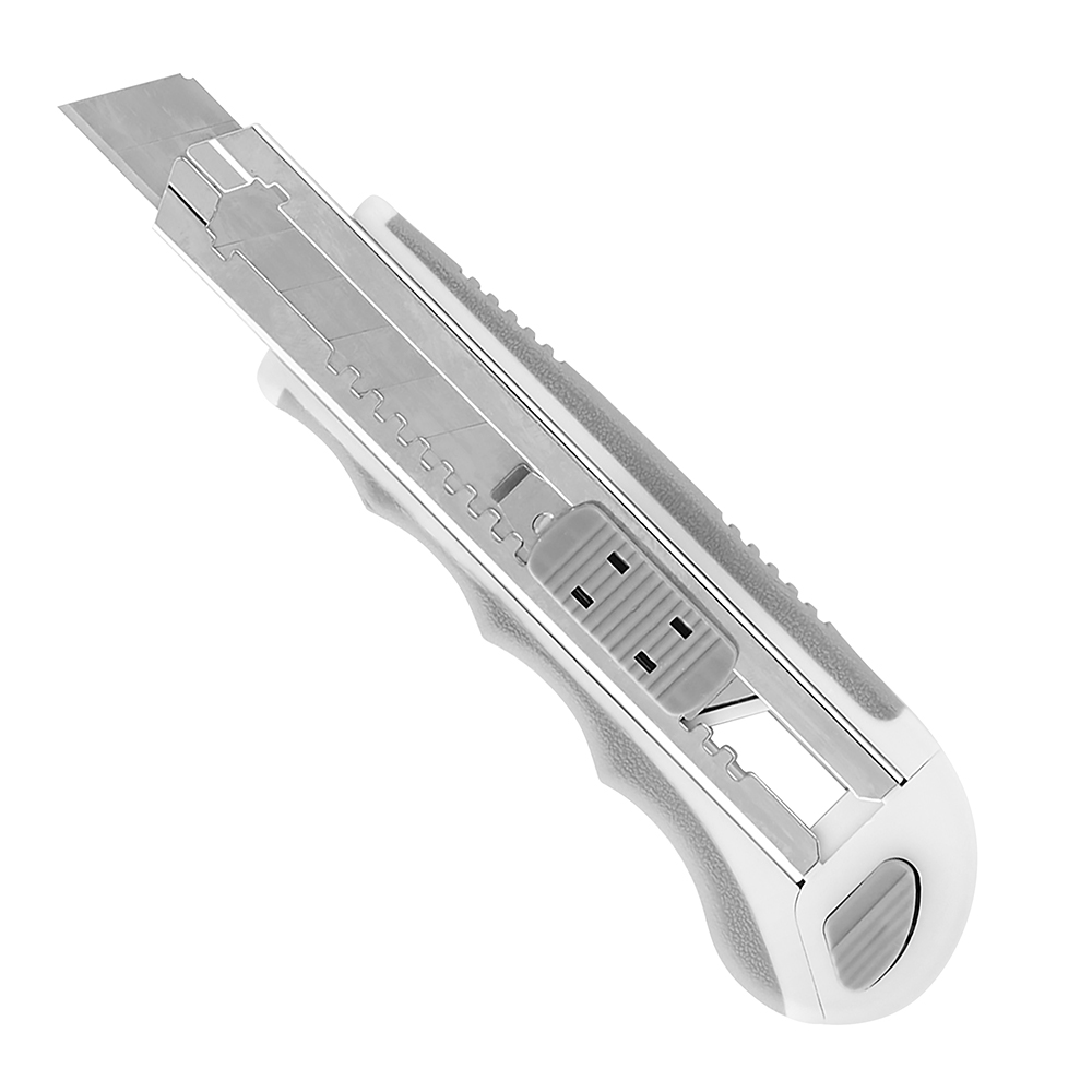Нож с выдвижным сегментированным лезвием 18 мм используется для разрезания различных строительных материалов, таких как гипсокартон, аквапанель, различные виды пленки, пенополистирол, картон и т.д.