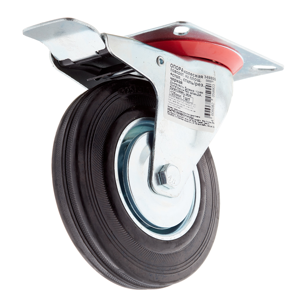 Опора колесная поворотная сталь/резина со стопором 125 мм черная (1 шт.)