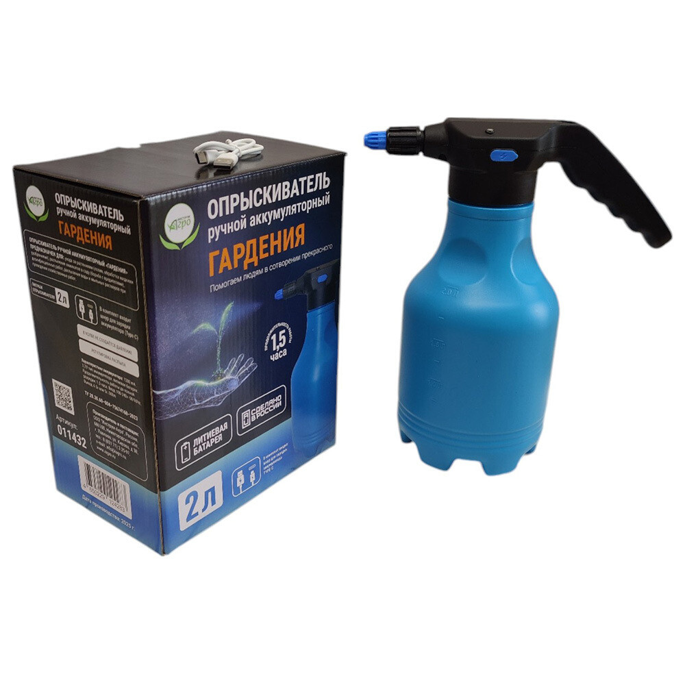 Аккумуляторный опрыскиватель подходит для полива растений, домашней уборки и мытья окон, распыления химикатов и удобрений, дезинфекции. Работает от литиевой батареи и заряжается при помощи USB-кабеля, который входит в комплект. Продолжительность работы до полной разрядки — 2 часа. Объем опрыскивателя — 2 л.