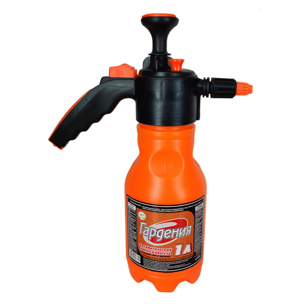 Опрыскиватель «Гардения» с клапаном сброса давления предназначен для дезинфекционных работ, распыления химикатов в саду (борьба с вредителями), ухода за растениями (обработка жидкими удобрениями). Излишнее давление, создаваемое в колбе, сбрасывается через специальный клапан. Объем заливаемой жидкости — 1 л.