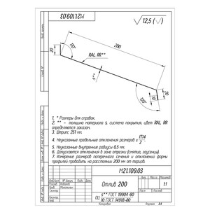 Отлив 200х2000 мм коричневый RAL 8017