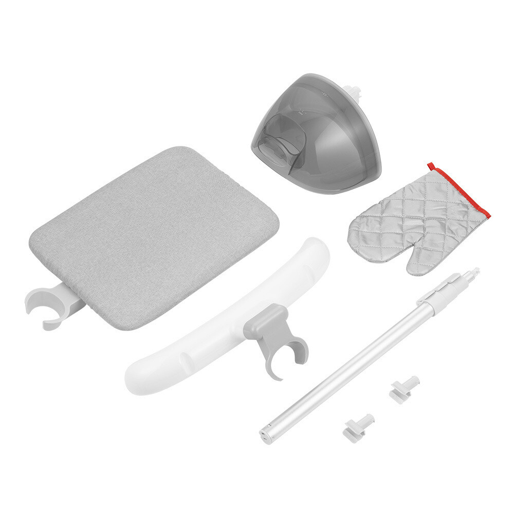 Телескопическая стойка – 1 шт., вешалка с держателем для утюжка – 1 шт., гладильная доска с держателем для утюжка – 1 шт., защитная варежка – 1 шт.