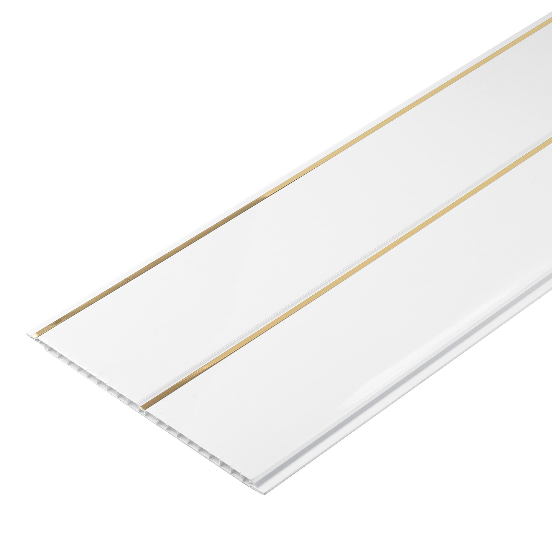 Потолочные ПВХ панели Нордсайд предназначены для отделки потолков и имитации реечных потолков со вставками под золото.