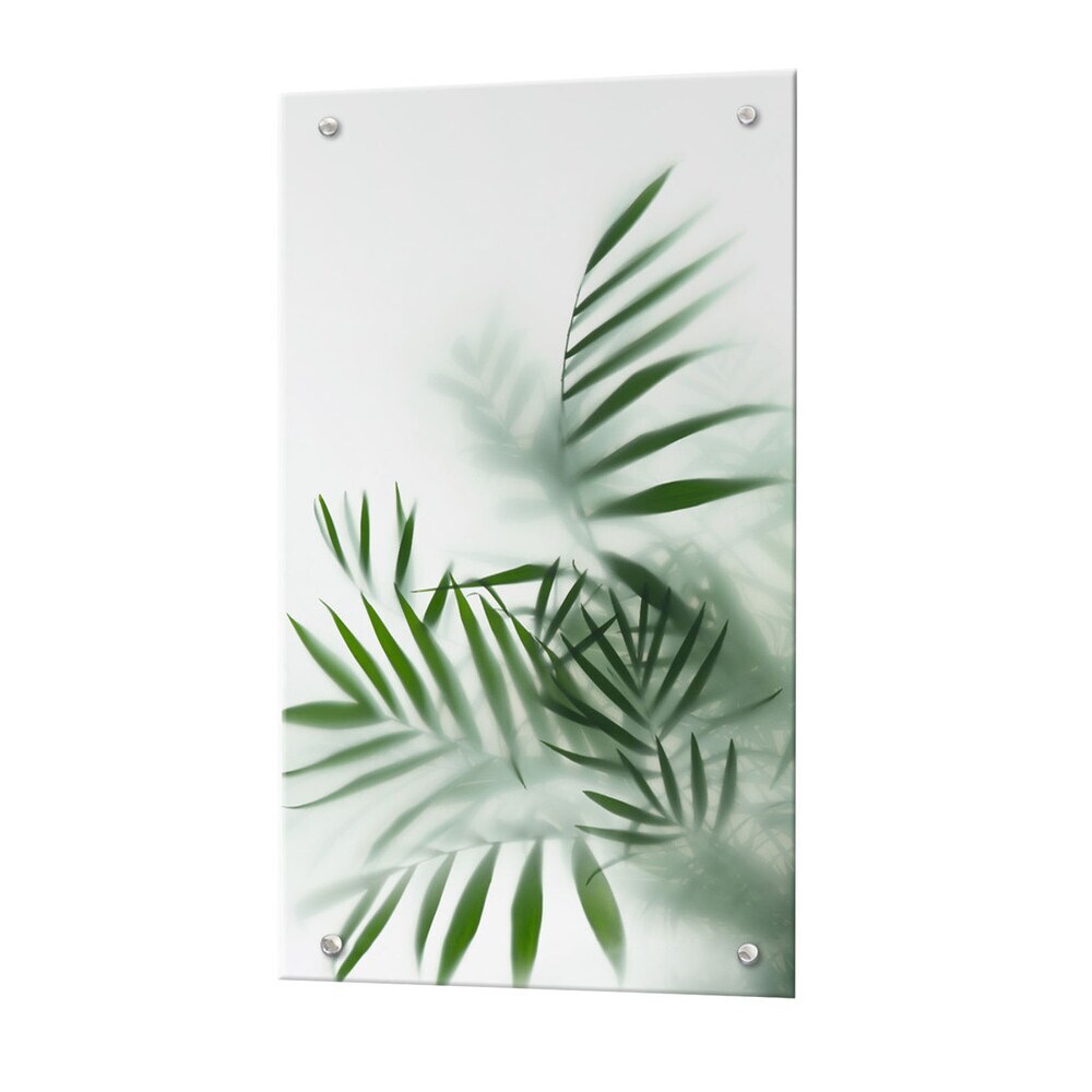 Панель стеновая закаленное стекло для кухни 500х900х4 мм листья за стеклом