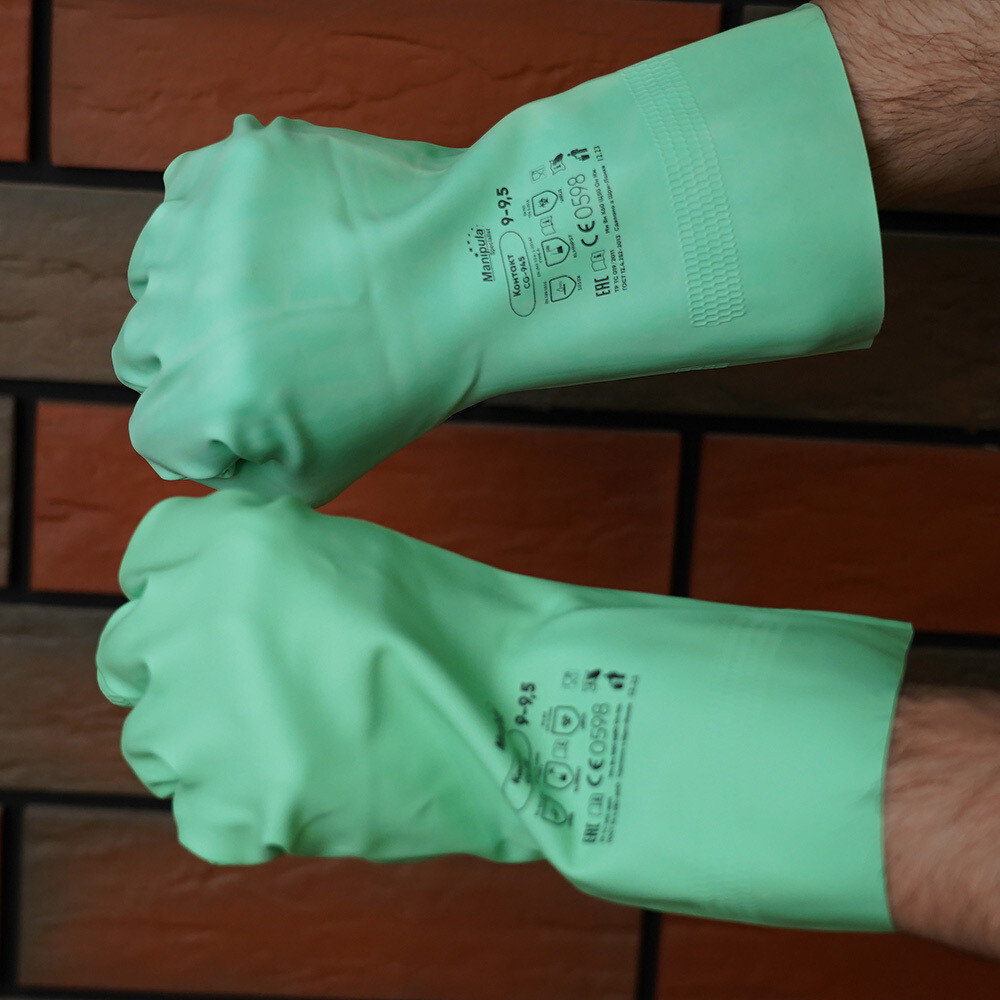 Предназначены для защиты рук. Применяются при работах с растворами кислот и щелочей, их солей, с сыпучими и красящими химическими веществами, а также допущены к контакту с пищевыми продуктами.