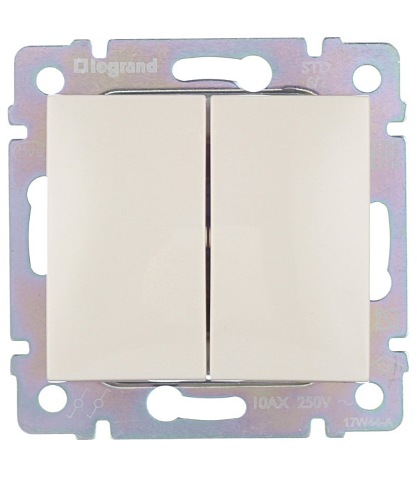 Переключатель Legrand Valena двухклавишный встраиваемый слоновая кость (695604)