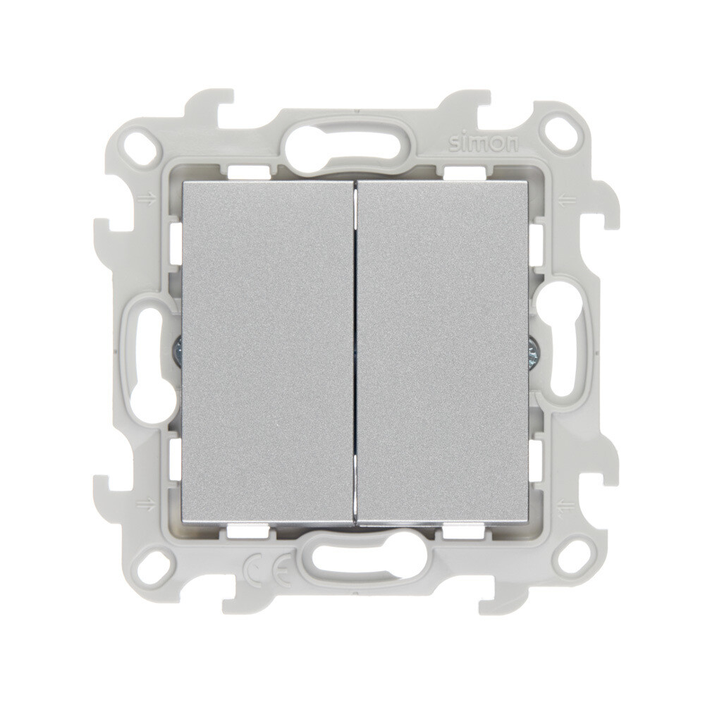 Переключатель Simon 24 Harmonie двухклавишный встраиваемый алюминий (2410397-033)