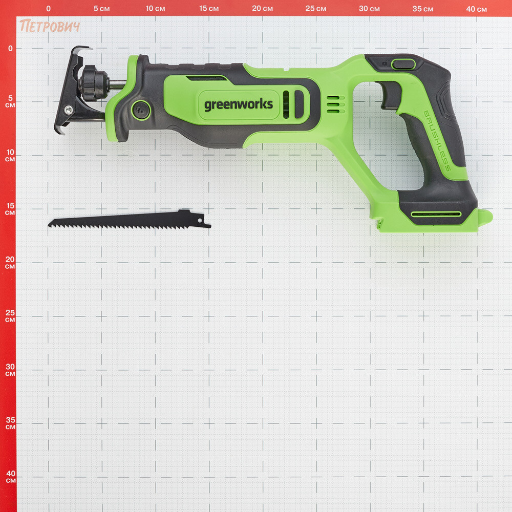 • Пила сабельная компактная аккумуляторная Greenworks GPT-BLRS-1;