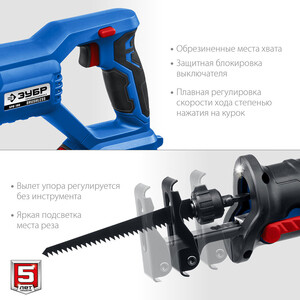Пила сабельная аккумуляторная Зубр SPB-180 20 В 4 Ач Li-Ion с АКБ и ЗУ (SPB-180-41)