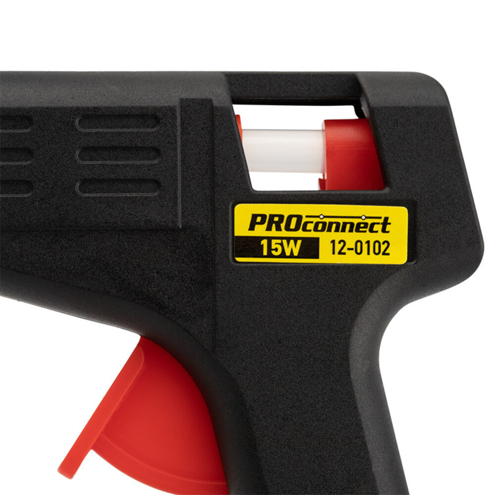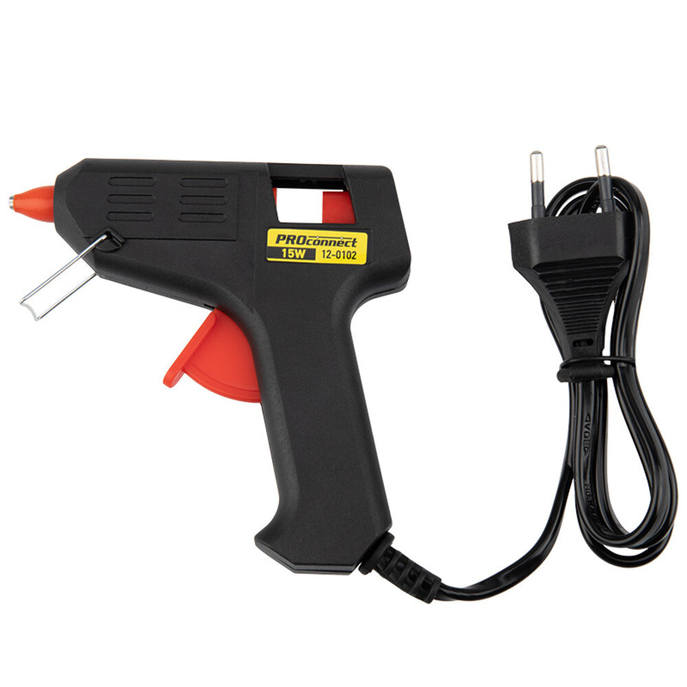 Пистолет клеевой PROconnect (15 Вт, Ø7 мм) предназначен для прочной фиксации поверхностей с помощью расплавленной клеевой массы.