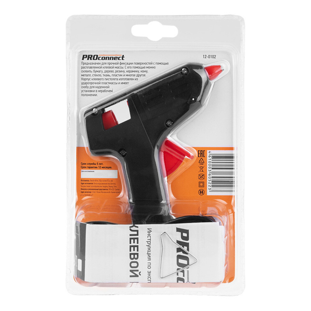 Комплектация: Клеевой пистолет — 1 шт., паспорт — 1 шт., сетевой шнур — 1 шт., блистер.
