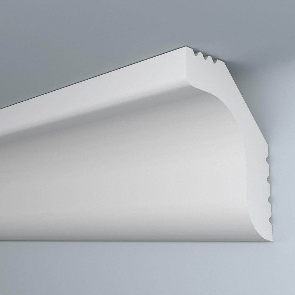 Предназначен для внутренней декоративной отделки жилых помещений. Классическая модель плинтуса имеет высокую плотность, гладкую матовую поверхность. Оптимальная плотность потолочного плинтуса обеспечивает однородность структуры, а незначительный вес создает дополнительные удобства при монтаже. Не требует обязательной окраски. Крепится к стене и потолку при помощи шпаклевки или жидких гвоздей.