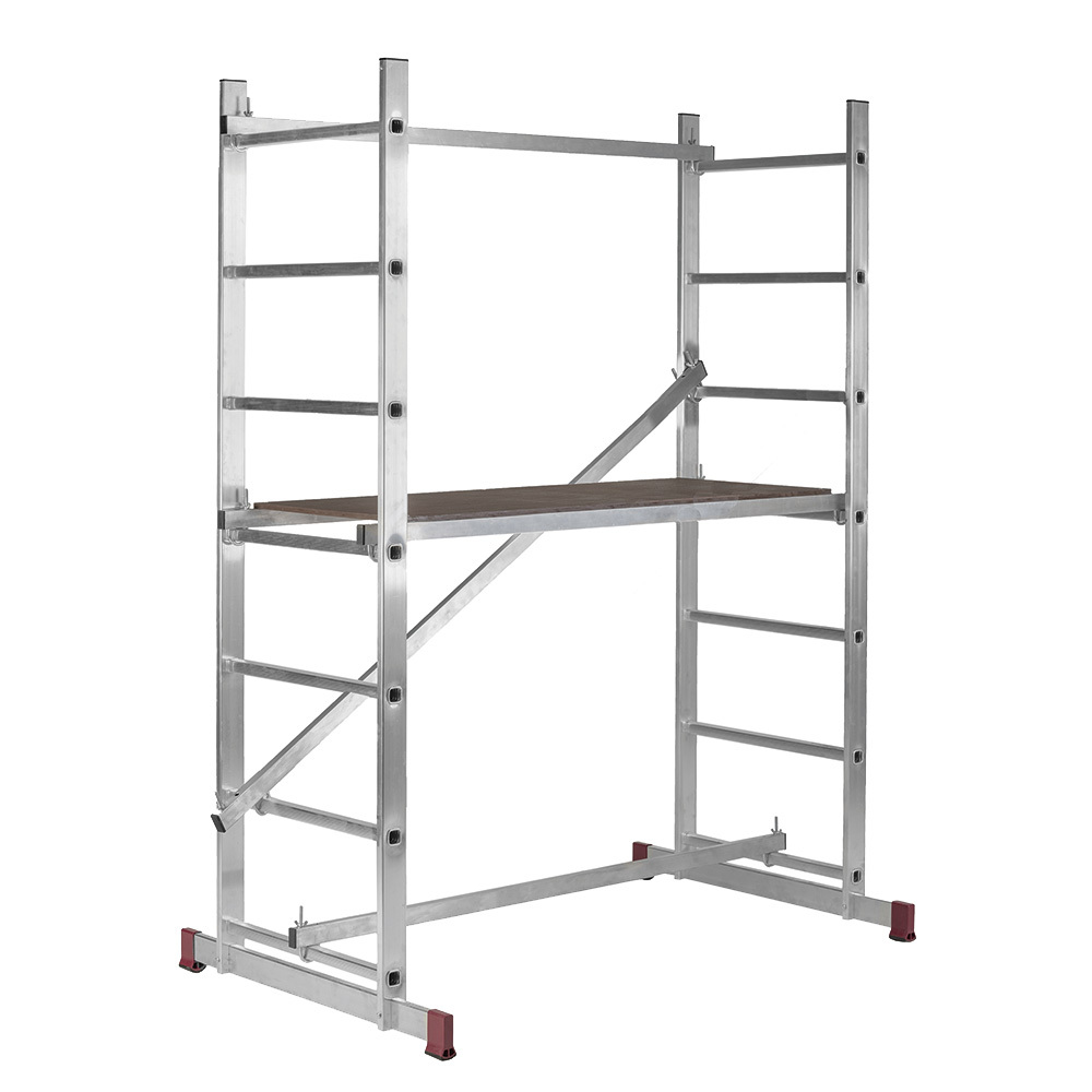 Предназначена для выполнения ремонтно-отделочных работ внутри и снаружи помещений. Лестница-помост состоит из 2-х приставных лестниц с 7 ступенями и рабочей платформы 125х50 см (длина х ширина). Боковины усилены между собой тремя перекладинами. Максимальная высота до рабочей площадки — 1 метр.