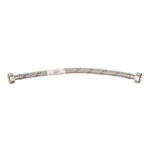 резиновый шланг (EPDM) в оплетке из нержавеющей стали AISI 304, гайки, ниппель и штуцер – латунь.