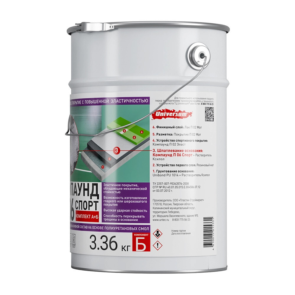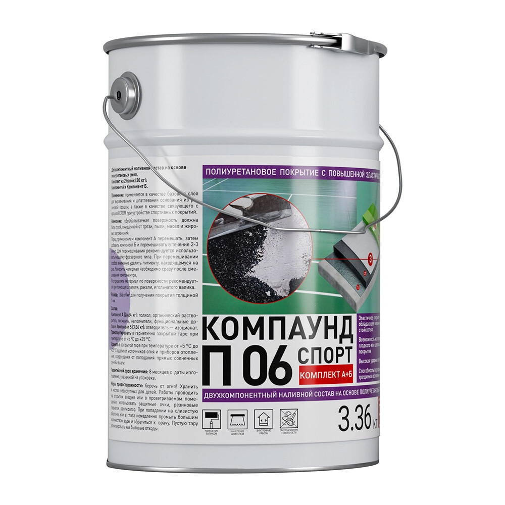 Применяется в качестве базового слоя для выравнивания и шпатлевания основания из резиновой крошки, а также в качестве связующего с крошк…