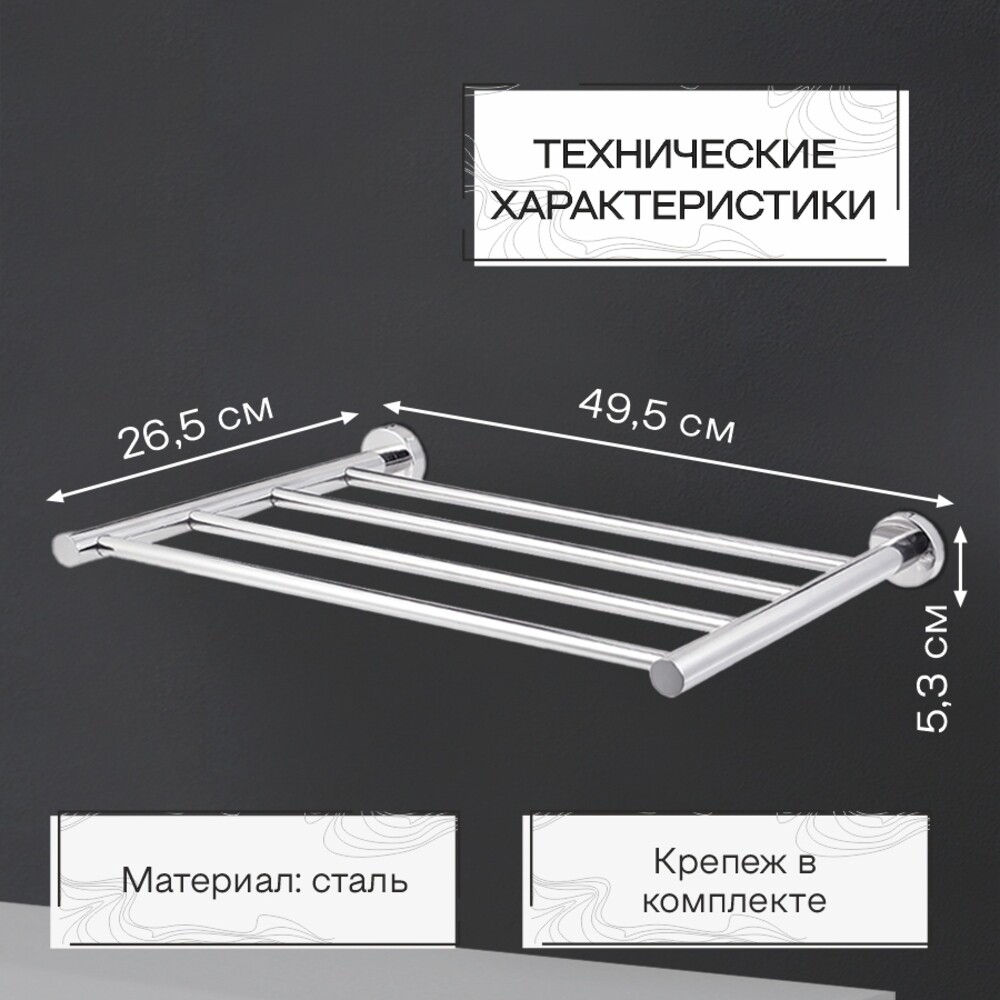 Полка для полотенец Zenfort 495х265 мм на шуруп металл хром (180067)