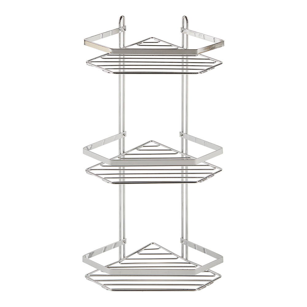 Полка угловая трехъярусная, изготовлена из высококачественного металла с хромированным покрытием.