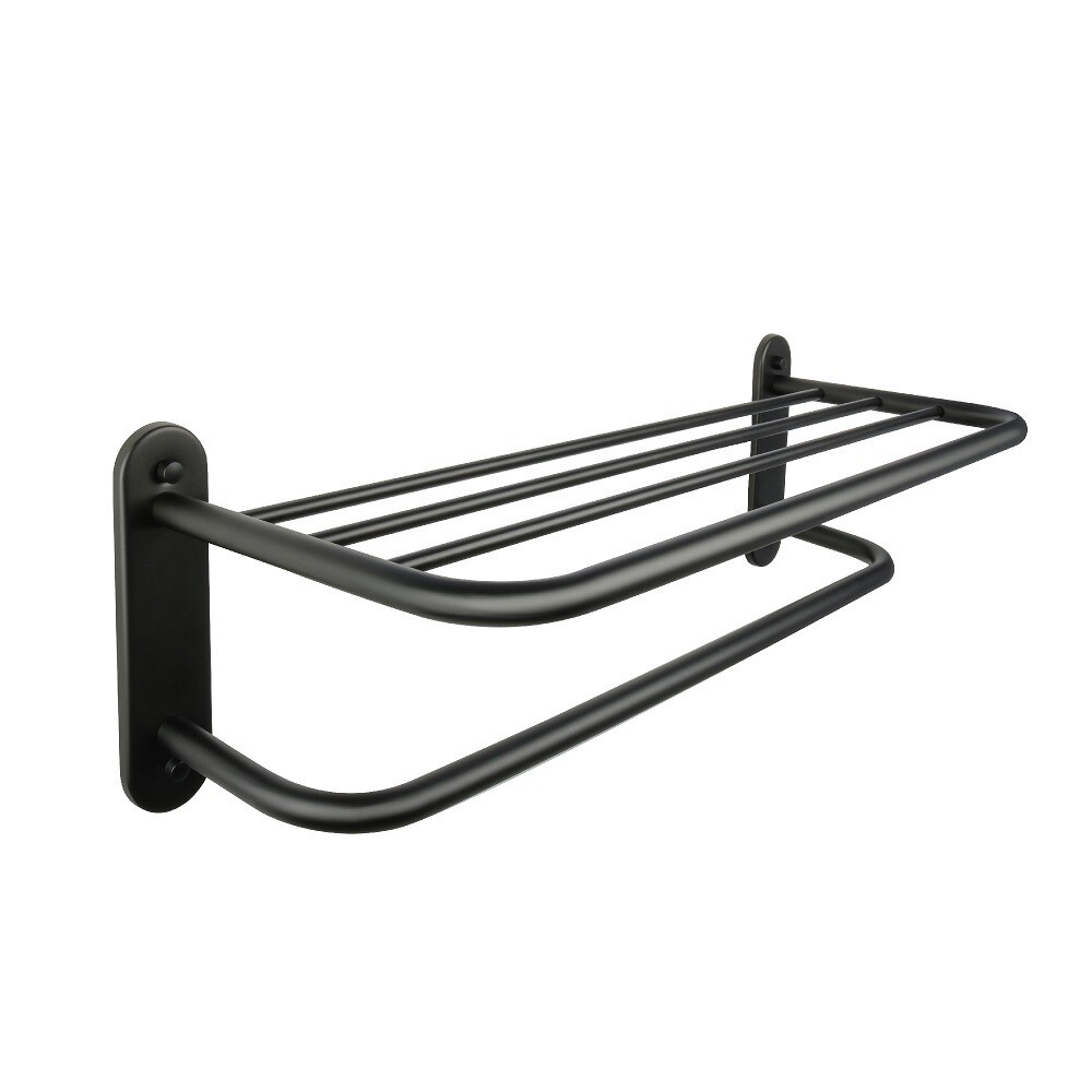 Полка для полотенец Hotel в черном цвете. В производстве данной серии используется нержавеющая сталь и усиленные крепежи. Изделие, способно выдерживать постоянные нагрузки и удобно в обслуживании.