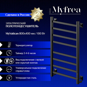 Полотенцесушитель электрический MyFrea MyVatican 800х400 мм 124 Вт с терморегулятором черный