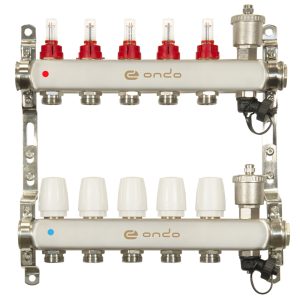 Коллекторная группа с расходомерами Ondo 1 ВР(г) х 5 выходов 3/4 НР(ш) ЕК х 1 ВР(г)