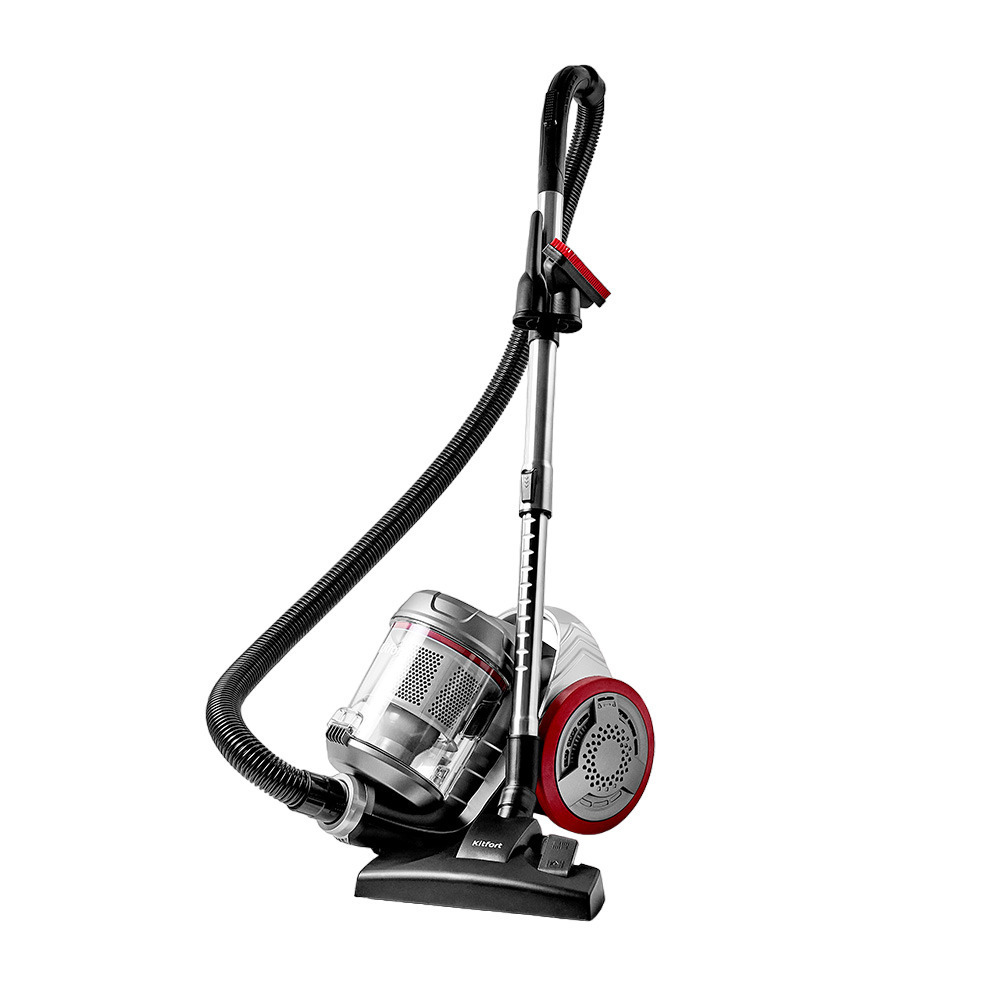 Пылесос Kitfort КТ-5152 можно использовать для уборки полов и ковровых покрытий, а также чистки мягкой мебели благодаря целому комплекту насадок. Мощность пылесоса составляет 700 Вт, что позволяет справляться даже с сильными загрязнениями. Щетка для паркета предназначена для бережной чистки паркета и ламината. Узкая насадка поможет вычистить щели, углы, плинтусы, радиаторы батарей. Небольшая турбощетка справится с удалением мельчайших частиц пыли, волос, ниток и шерсти животных. Напольная щетка имеет выдвигаемый ворс для уборки ковров и ковровых покрытий. Педаль для быстрого переключения между чисткой ковра и гладких поверхностей можно слегка нажимать ногой, не наклоняясь к пылесосу и не прерывая уборку. Кнопки Вкл/Выкл и автоматической смотки шнура можно нажать ногой. Выбор мощности осуществляется регулятором. Max мощность подойдет для очистки ковров и сильных загрязнений, min — для уборки гладких поверхностей с легкой степенью загрязнения. Съемный пылесборник выполнен из прозрачного пластика, поэтому вы поймете, когда его следует очистить. Циклонный фильтр не пропускает наиболее тяжелые или объемные загрязнения. Фильтр грубой очистки отсеивает средние частицы мусора, а тканевый и поролоновый фильтры останавливают мельчайшие частички пыли, чтобы они не могли попасть обратно в воздух. Выходной фильтр тонкой очистки, который находится на воздухоотводных отверстиях, сокращает выброс оставшейся очень мелкой пыли в воздух. Все фильтры легко разбираются и чистятся по необходимости. Чтобы насадки хранились в одном месте и не терялись, на удлинительной трубке пылесоса имеется держатель для насадок. Пылесос имеет большие колеса для легкого перемещения и ручку для переноски прибора. Телескопическая трубка имеет регулировку длины под ваш рост.