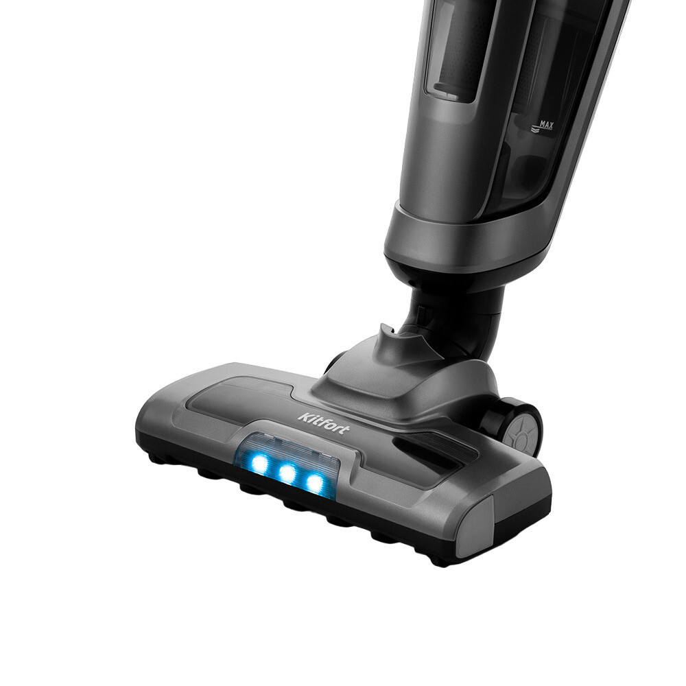 Вертикальный беспроводной пылесос Kitfort КТ-594 удобен при локальной и генеральной уборке. Устройство работает от встроенного аккумулятора, что позволяет использовать пылесос даже там, где нет электрической розетки, например, в дачной беседке, салоне автомобиля или дальнем углу балкона. Конструкция «3 в 1» позволяет использовать пылесос в трех модификациях: вертикальный пылесос; вертикальный пылесос с насадкой для влажной уборки; ручной пылесос. Он легко извлекается из корпуса вертикального пылесоса и будет полезен для локальной уборки в труднодоступных местах. Одно из главных достоинств вертикального пылесоса – его компактность. Пылесос имеет функцию вертикальной парковки – он может стоять вертикально, не опираясь на стену или другой предмет. Также пылесос можно повесить на стену с помощью кронштейна и крепежей, идущих в комплекте. …