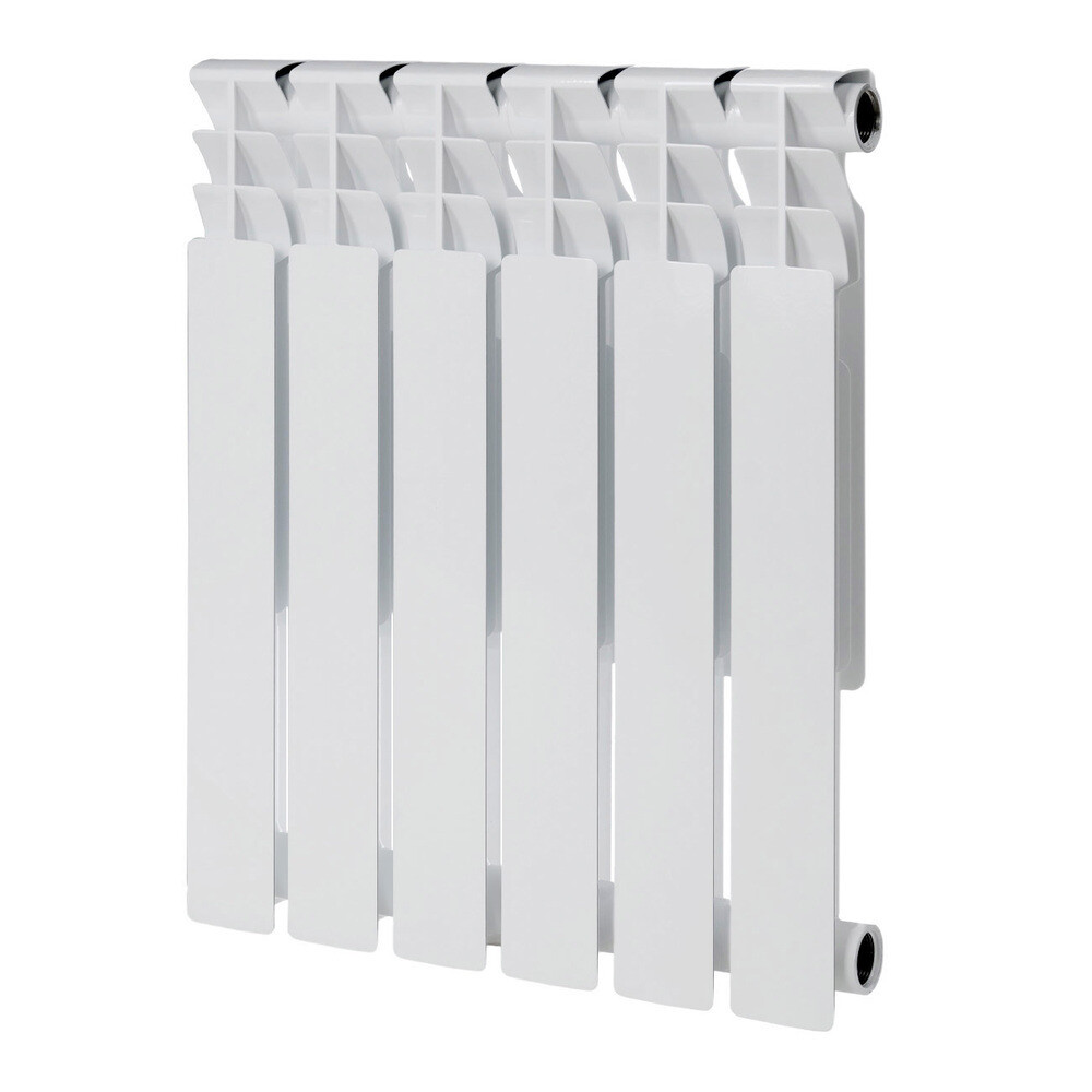 Главная / Каталог / Инженерные системы / Отопление / Радиаторы отопления и комплектующие / Радиаторы биметаллические / Радиатор биметаллический КМ 500 мм 6 секций 1″ боковое подключение белый