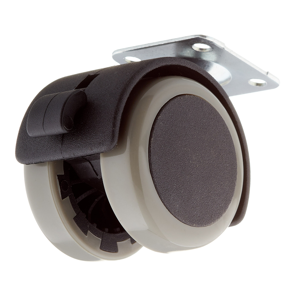 Ролик двойной на площадке со стопором d50 мм (серый)