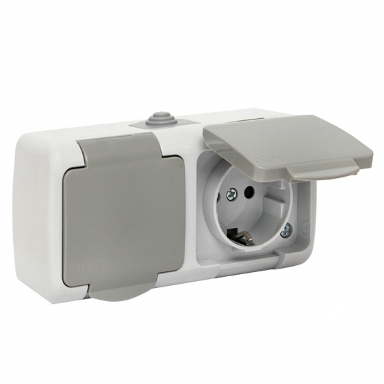 Розетка EKF Мурманск накладная серая со шторками с крышкой (EFR16-129-30-54)