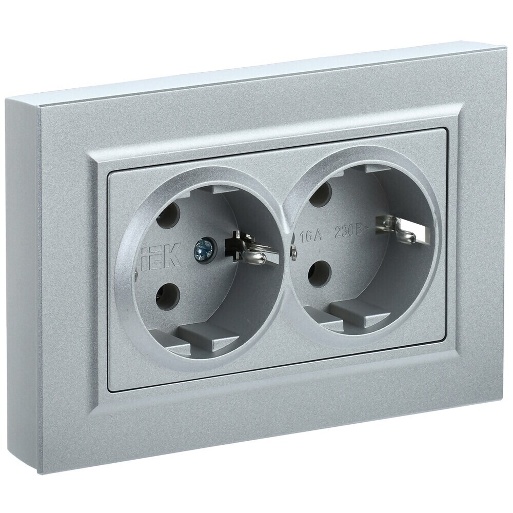 Розетка IEK Brite РС12-3-БрС встраиваемая сталь (BR-R21-16-K46-F)