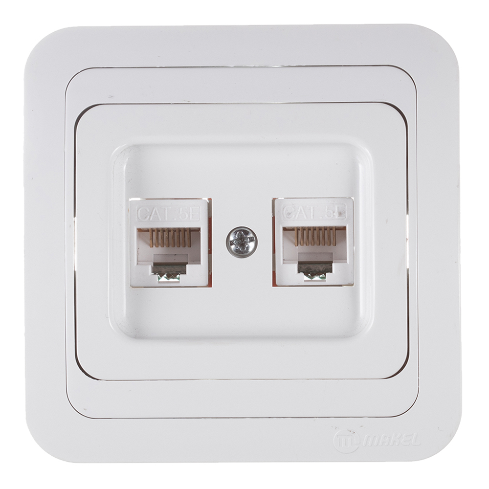 Розетка компьютерная Makel Mimoza встраиваемая белая 2хRJ45 (12036)