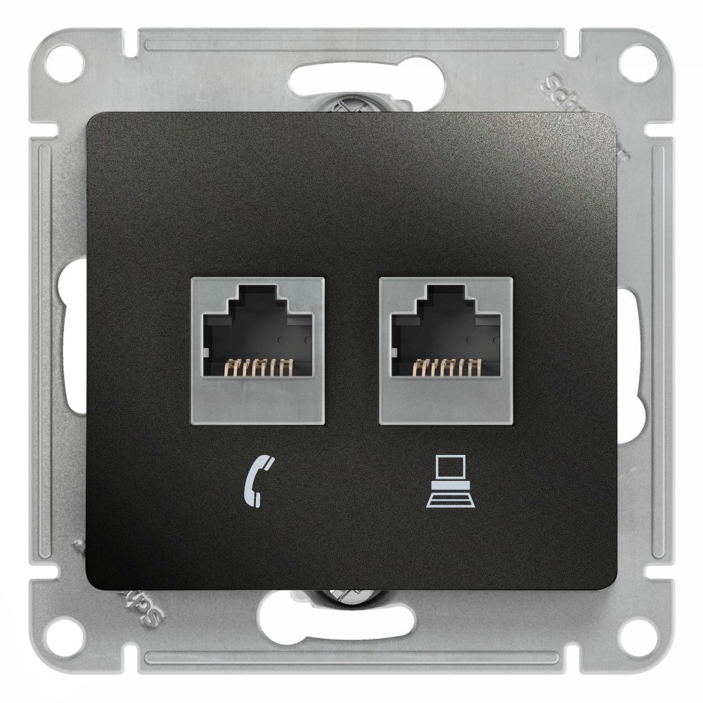 Розетка компьютерная/ телефонная Systeme Electric Glossa встраиваемая антрацит RJ11/ RJ45 (GSL000785)