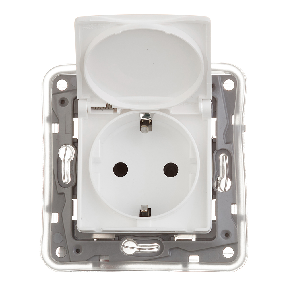 Розетка Legrand Etika встраиваемая белая со шторками с крышкой (672232)
