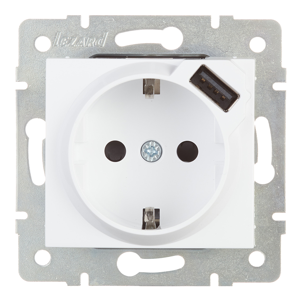 Розетка Lezard Karina встраиваемая белая с USB-A (707-0288-181)
