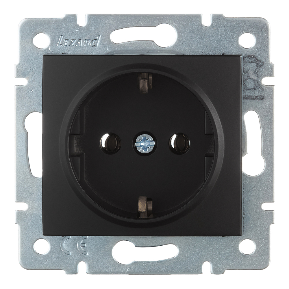 Предназначена для подключения электроприборов к силовой электрической сети. Розетка с контактами заземления, черный бархат, скрытой установки.