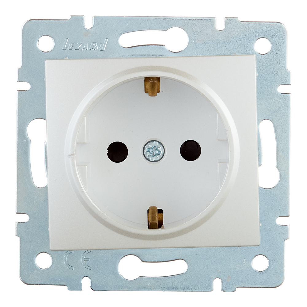 Предназначена для подключения электроприборов к силовой электрической сети. Розетка с контактами заземления, с защитными шторками, жемчужно-белый перламутр, скрытой установки.