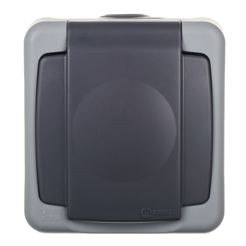 Розетка Svet накладная серая с крышкой (EV 0366-6629)