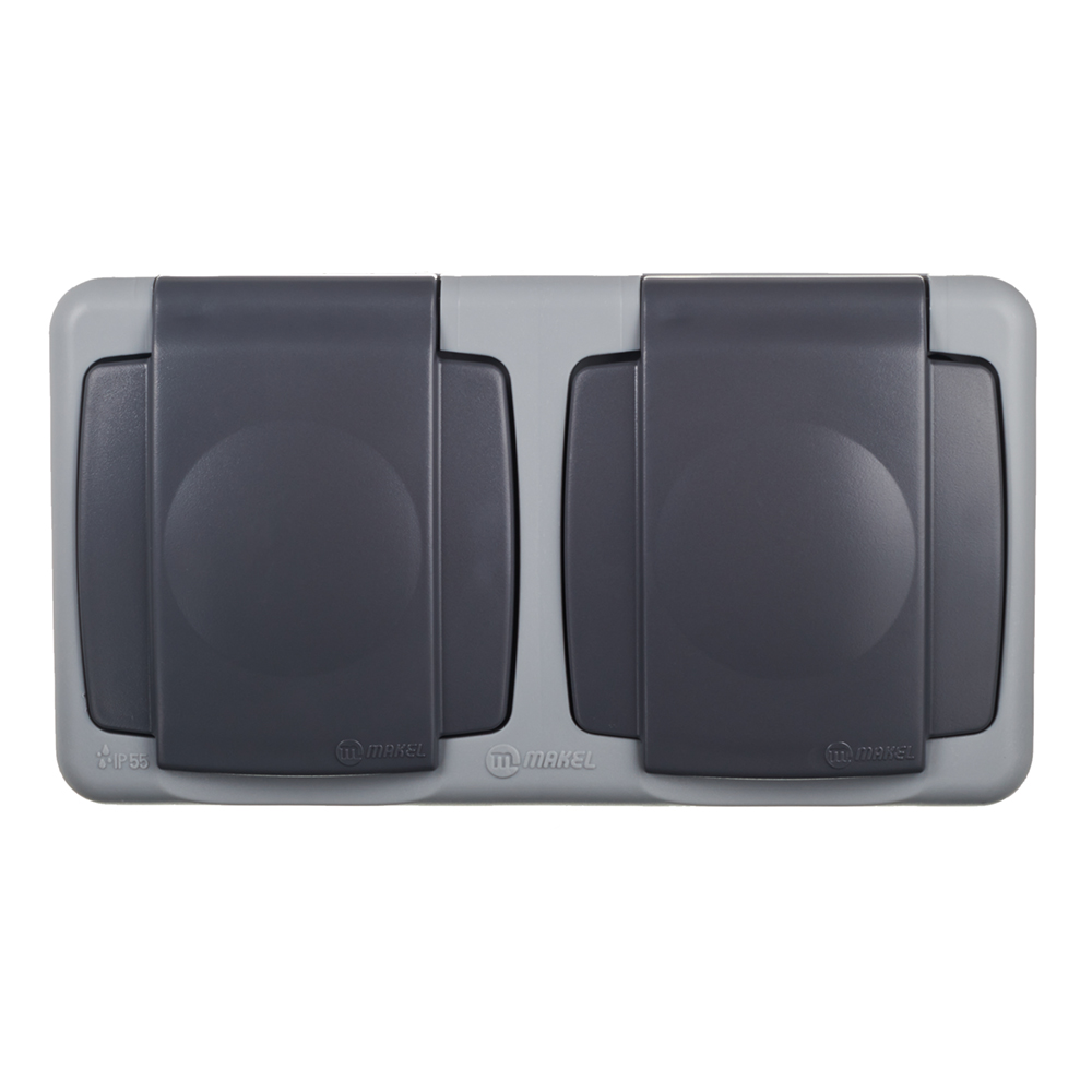 Розетка Makel накладная серая с крышкой (36064201)
