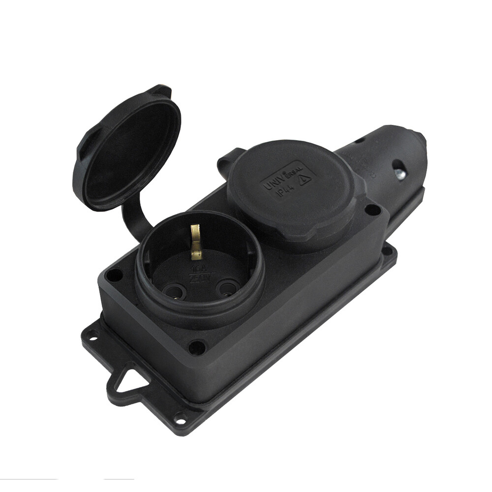 Розетка штепсельная UNIVersal двойная с заземлением IP44 черная