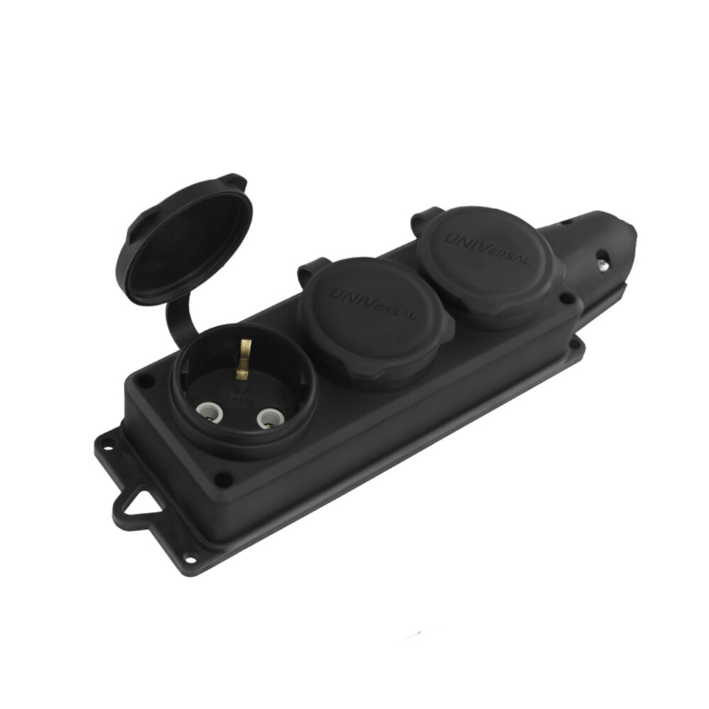 Розетка штепсельная UNIVersal тройная с заземлением IP44 черная