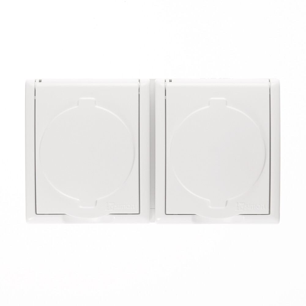 Розетка Simon 15 Aqua накладная белая со шторками с крышкой (1594443-030)