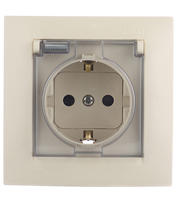 Розетка Simon 15 встраиваемая слоновая кость со шторками с крышкой (1590450-031)