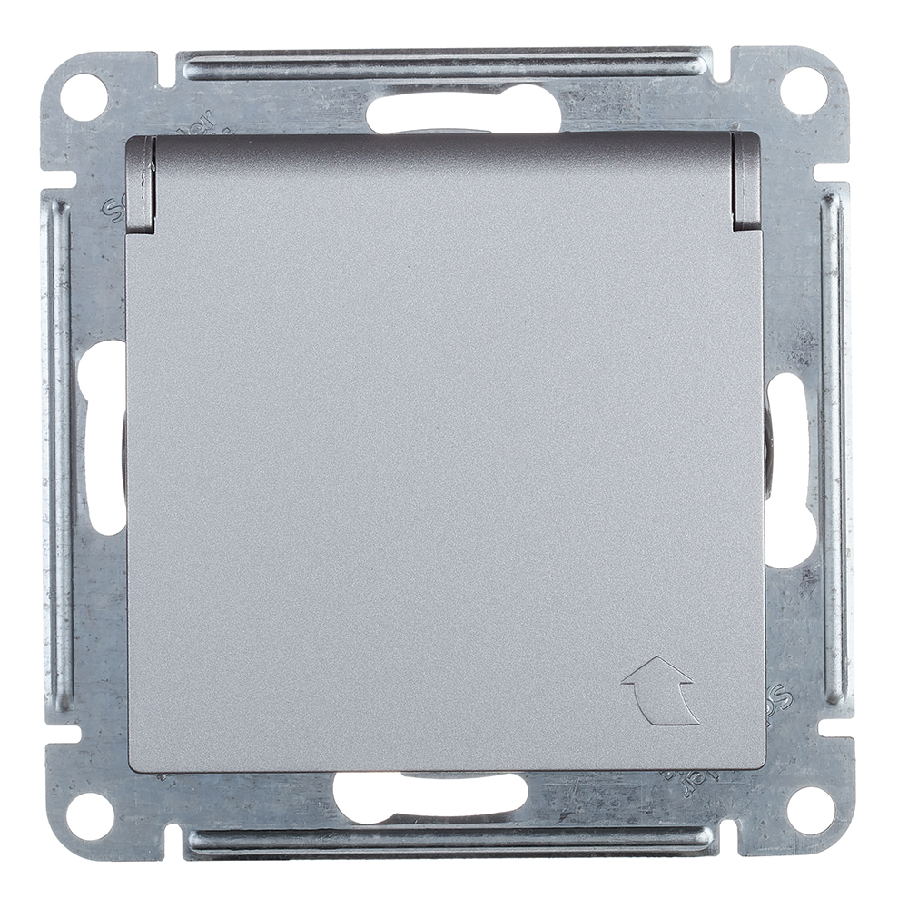 Розетка Systeme Electric AtlasDesign встраиваемая алюминий со шторками с крышкой (ATN000346)