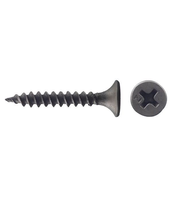 Саморезы имеют потайную головку с крестообразным шлицем PH2, острый наконечник и частую резьбу. Производятся из углеродистой стали с последующим оксидированием для защиты от коррозии.